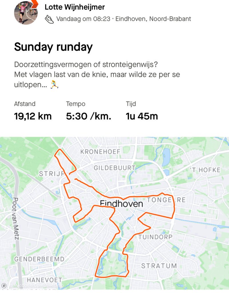 Qua doeltijd voor de halve marathon is dit niks, maar dat hoeft ook niet, er zijn nog zes weken om te herstellen en te versnellen!