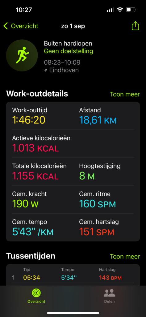 (ps als iemand meer info heeft over de verschillen Strava / Apple Watch, let me know! Ik gok op het verschil in GPS in het horloge en telefoon, maar heb ook geen idee)